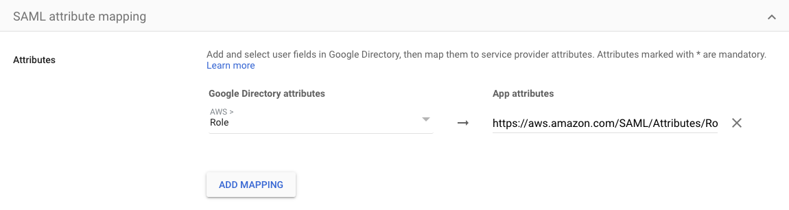 5. Go to your Code Ocean custom SAML app under Web and Mobile Apps. Edit the SAML Attribute Mapping section to map the custom AWS Role attribute to an App attribute `https://aws.amazon.com/SAML/Attributes/Role`: