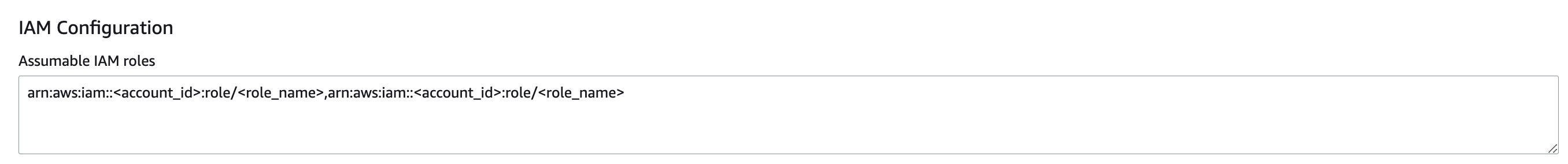 * In the **IAM Configuration** parameter section -> **Assumable IAM roles** parameter, enter the IAM role ARN that you want to allow Code Ocean the assume on behalf of users. If you want to insert more than one role, use commas to delimit between them.\\